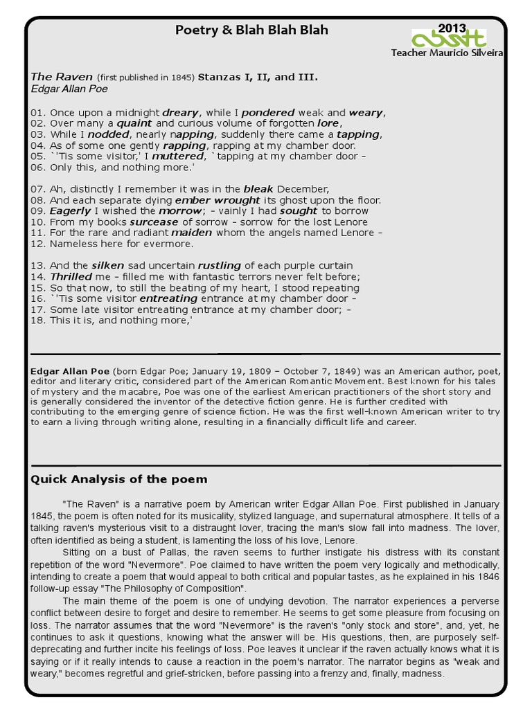 Up to 24 cash back Analysis. The Raven Poem Analysis Pdf. The Raven Poem.
